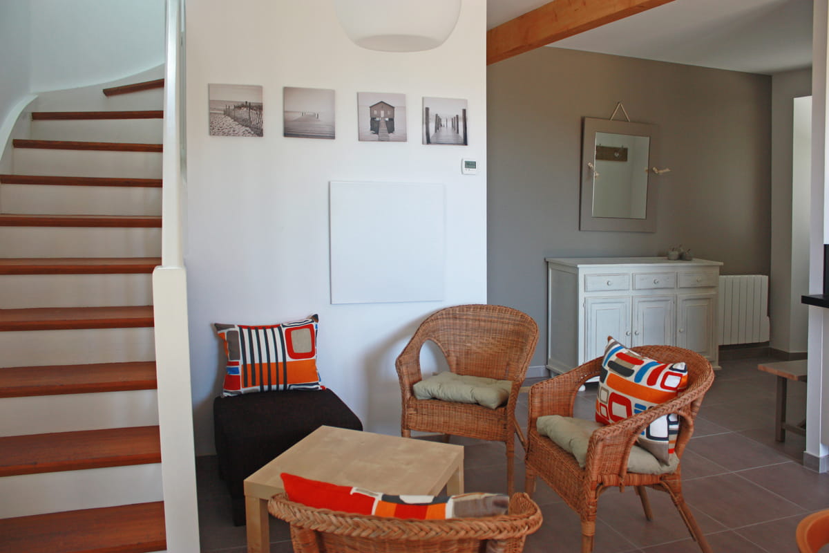 - Cuisine équipée : lave-vaisselle, réfrigérateur/congélateur, micro-ondes, four électrique, cafetière électrique, cafetière Nespresso, grille-pain. Table et fer à repasser.